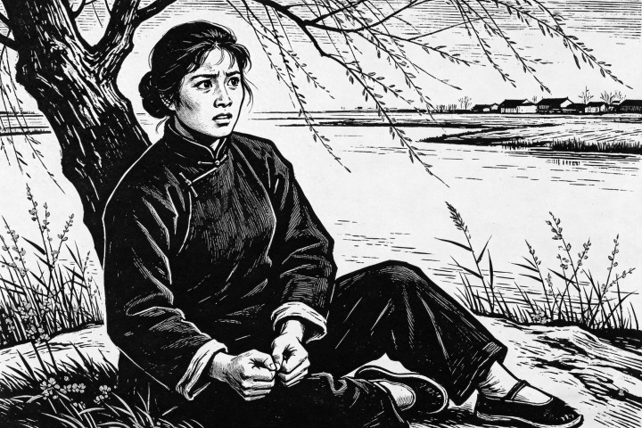 徐大嫂靠着河边一棵柳树,浑身发抖。她看着鬼子解扣子,看着鬼子把枪放在脚边,看着鬼子那张丑恶的脸越来越近。